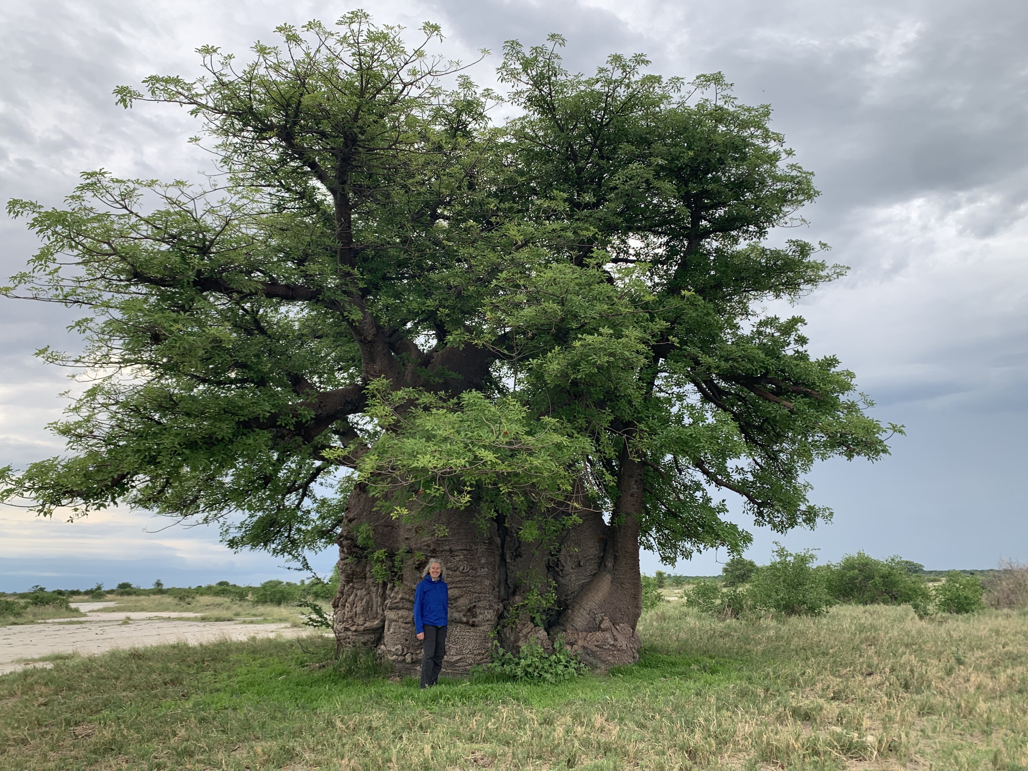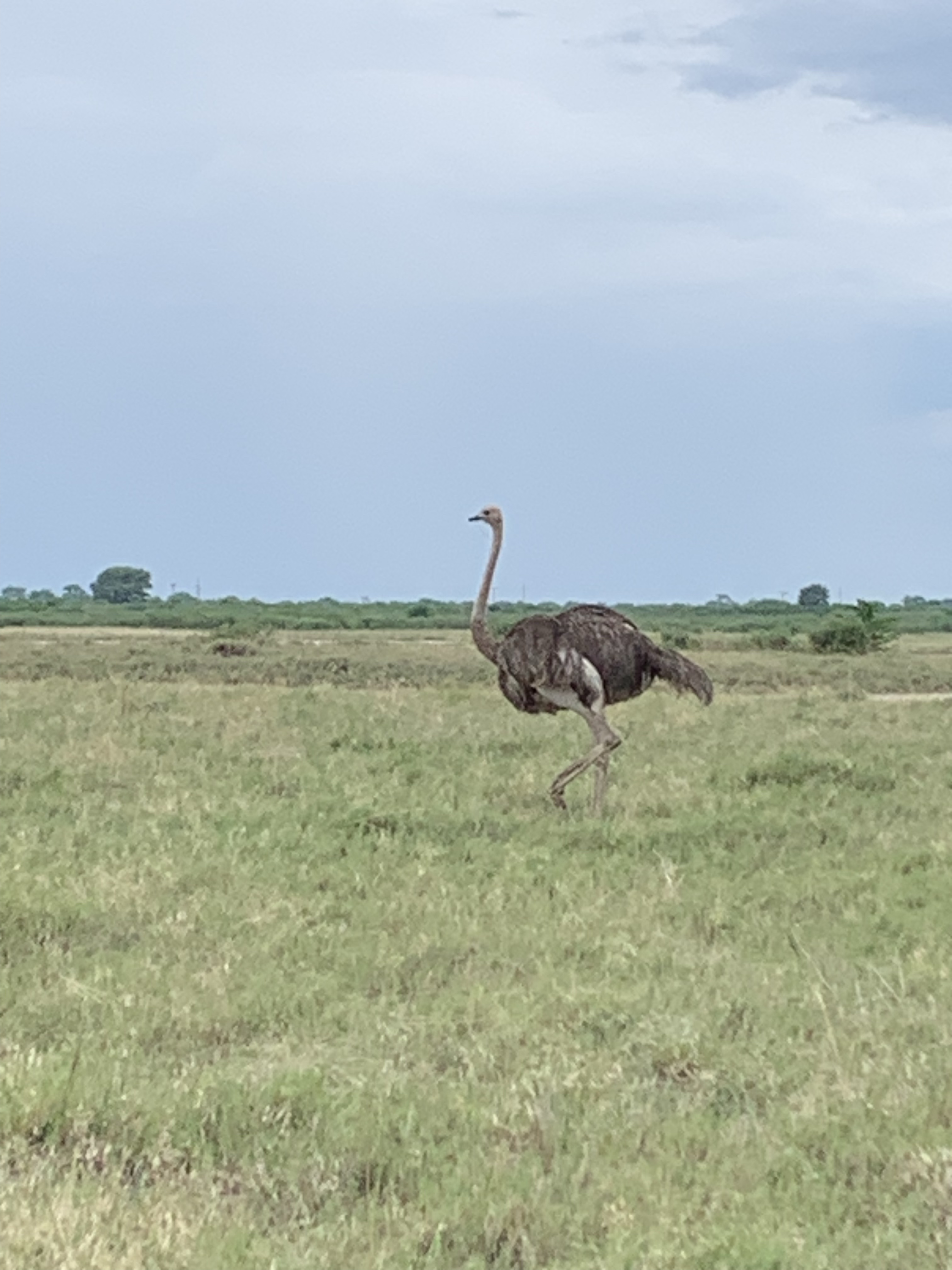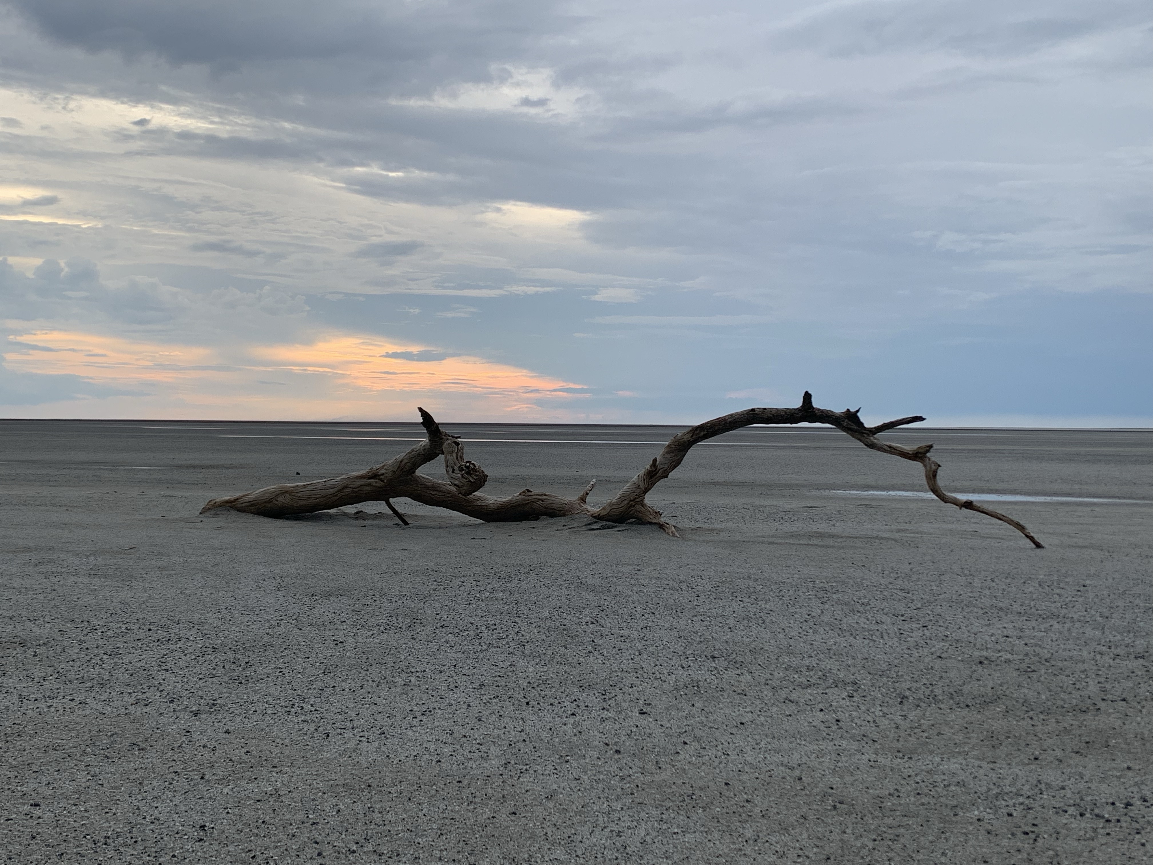 As we wound our way across the flattening country, somewhere the red soil turned beachy white. After more cultural discussions in the truck on topics like abortion and US politics, we arrived at today’s destination, Nata Lodge. After settling in we toured the world’s largest salt pan, Makgadikgadi at over 4600 square miles(!), which is surrounded by the Kalahari and adjacent to a huge bird sanctuary. The sanctuary, which has no predators and a plentiful food supply, is home also to zebra, wildebeest, flamingos, ostrich, meerkats, and apparently a hippo whose fresh tracks we saw at the salt pans. A hippo is considered one of the most dangerous animals in Africa and I’m glad we did not encounter this one whilst out on the pans but those tracks are adorable.