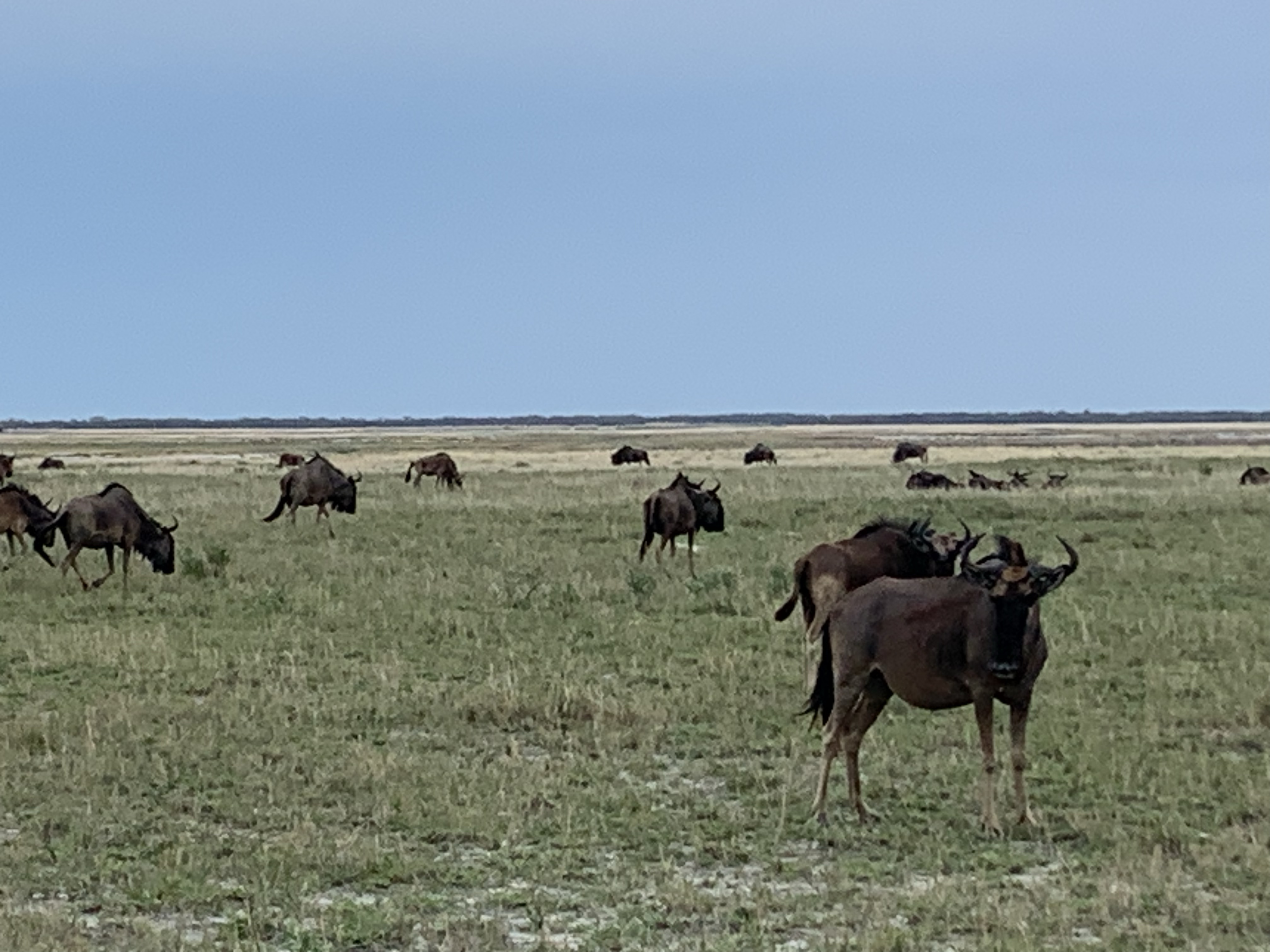 zebra, blue wildebeest, flamingoes, Coran (helicopter bird), Greater and Lesser (pinker)flamingos (fun fact- they massage the mud with their feet to disturb brine shrimp which is then scooped by their filtering beaks. They look like they’re dancing), long-tailed red collared widow bird, blue waxbill, red headed finch, cranes, and more.