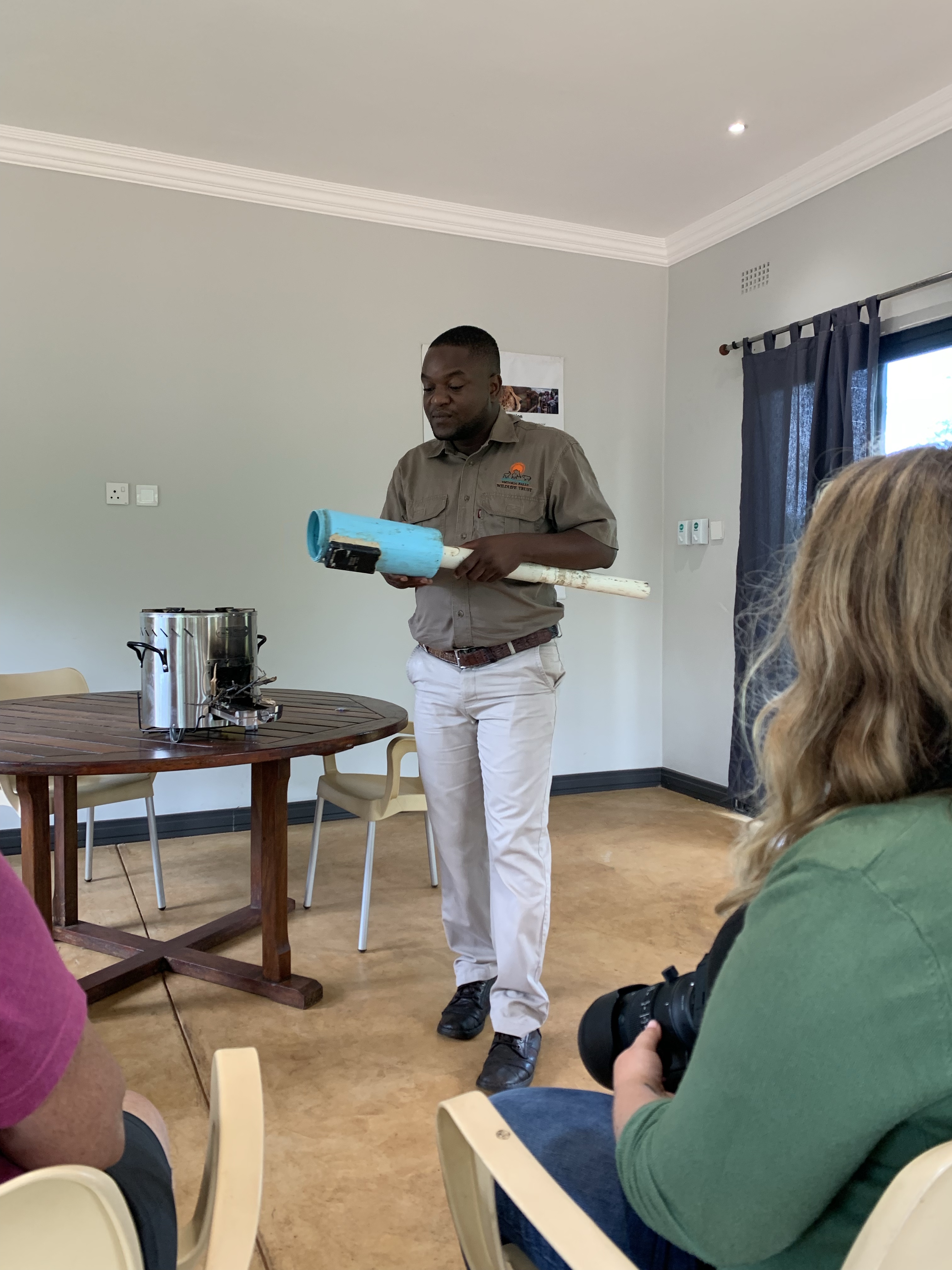 This morning we headed to Victoria Falls Wildlife Trust. I was thoroughly impressed with the good work they are doing in wildlife treatment/rehab/release, community outreach, human/animal conflict, poaching/poisoning/trapping, and more. The biggest concerns are vulture poisonings by poachers (the circling birds give away poachers’ locations), rhino poaching, lions attacking livestock, and elephants destroying crops.