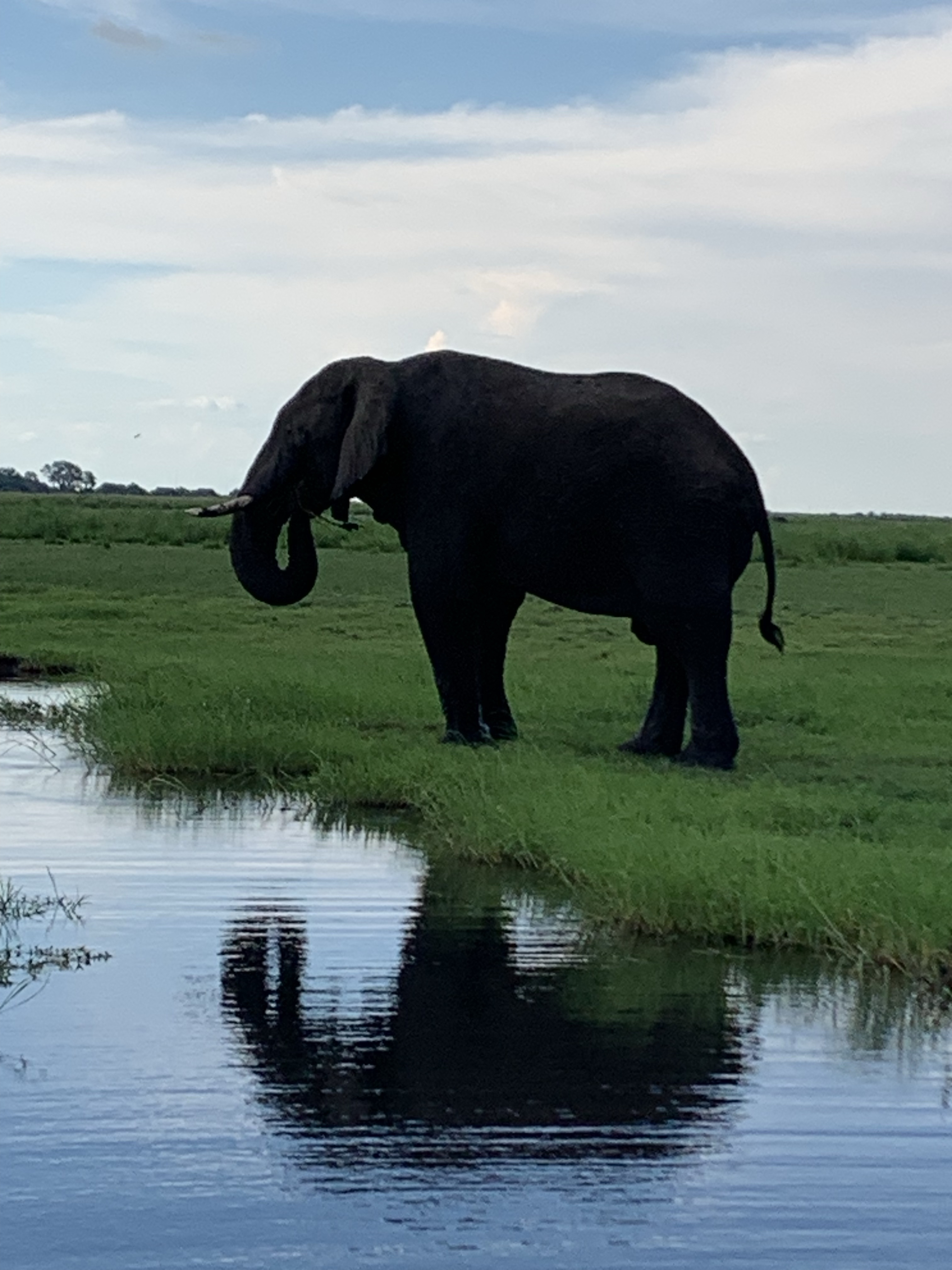 Our guide delivered us directly to the river for a sunset boat cruise that took us around Sidudu Island, which sits in the middle of the same Chobe River. In addition to seeing much wildlife (huge yellow and black Nile crocs, families of hippos, elephants on the grassy mid-river “savanna “, birds, iguanas, butterflies, waterbok, impalas, and more), we learned so much about them: